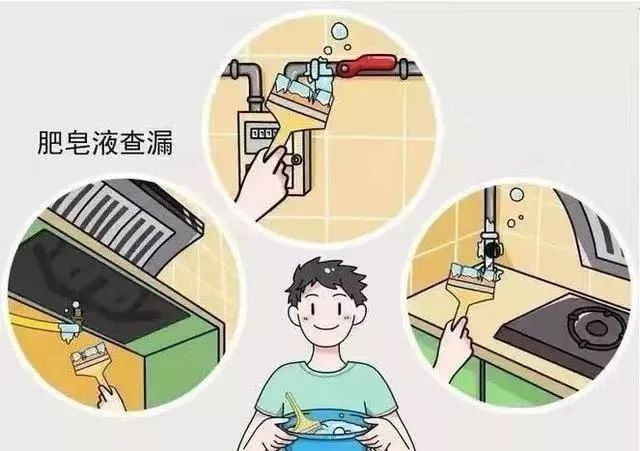 a.使用肥皂液查漏。使用洗涤精水,把泡沫均匀涂抹在燃气具的连接管、阀门、燃气表、尤其是管道接口处,如有气泡鼓起就是漏气。